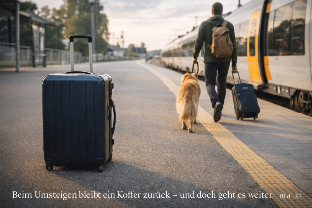 Doch auch dieser Zug hat eine Endstation. Aber diesmal trifft es Sie nicht mehr unvorbereitet; Sie haben gelernt, wie diese Reise funktioniert. Beim Umsteigen auf dem Bahnsteig bemerken Sie plötzlich: Ein Koffer fehlt.