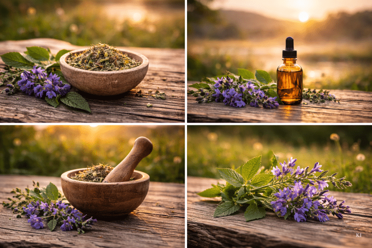 Im Unterschied zur Passionsblume steht weniger die akute Angstdämpfung, sondern die langfristige Regulation im Vordergrund. Eine vorsichtige, einschleichende Dosierung und eine klare Abgrenzung zur tierärztlichen Therapie sind dabei entscheidend. (Helmkraut unterstützt Regulation. Es ersetzt keine Diagnostik und keine notwendige medizinische Behandlung.)