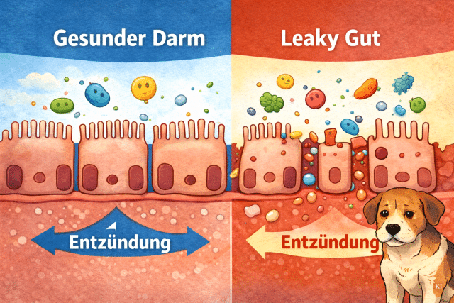 Trotzdem ist es wichtig, Mikrobiomarbeit nicht zu vereinfachen. „Mikrobiom stärken“ heißt nicht automatisch: „Probiotikum rein, Problem raus.“ Gerade bei sensiblen Hunden kann ein unpassendes oder zu schnell eingeführtes Präparat Symptome sogar verstärken. Gute Mikrobiomarbeit ist deshalb gezielt, individuell und eingebettet in Fütterungsmanagement und Schleimhautaufbau.
