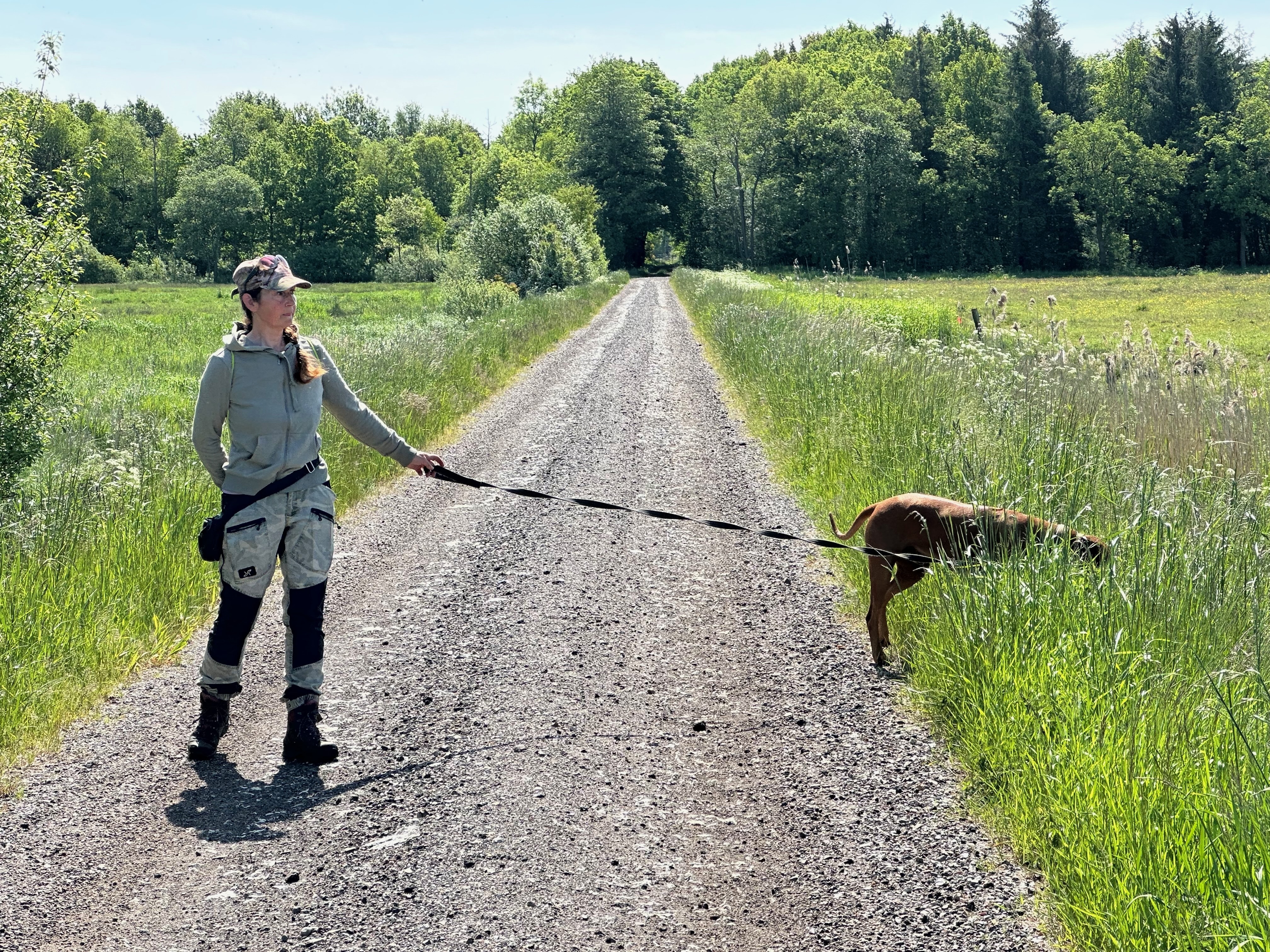 Beim Hund sieht das ähnlich aus. Nicht als „Geheimzeichen“, sondern als ganz normale Zustandsveränderung. Ein Hund, der innerlich mehr Spannung trägt, bewegt sich oft minimal anders. Die Schritte wirken kürzer, stakeliger, tänzelnder oder drängender. Die Atmung verändert sich. Der Blick wird enger. Das Tempo stimmt nicht mehr so richtig. Manchmal wirkt er „wacher“, manchmal „weg“. Manchmal ist er sehr nach außen gerichtet, als würde er die Umgebung scannen. Und manchmal ist er übertrieben beschäftigt, schnüffelt, sucht, läuft Bögen, pinkelt erst noch, bevor der nach einem Rückruf zu IHnen kommt; nicht aus Frechheit, sondern weil sein System versucht, sich zu sortieren.